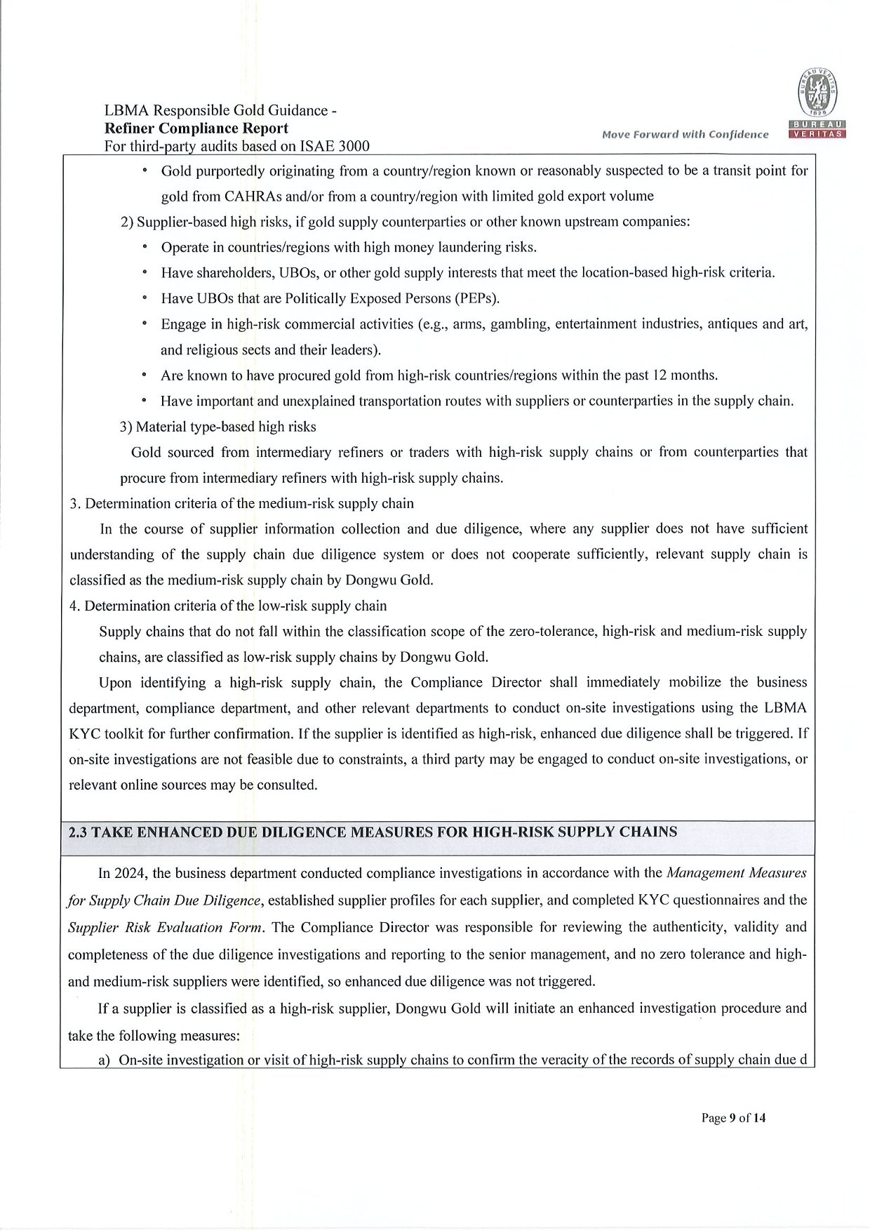 Dongwu Gold Refiner Compliance Report 2024