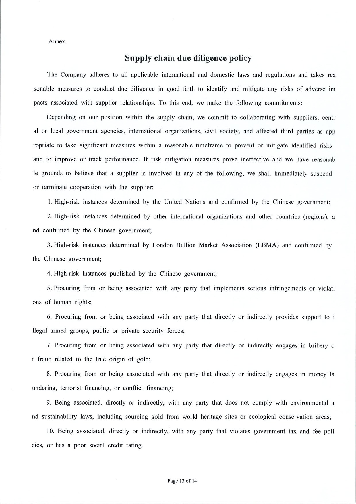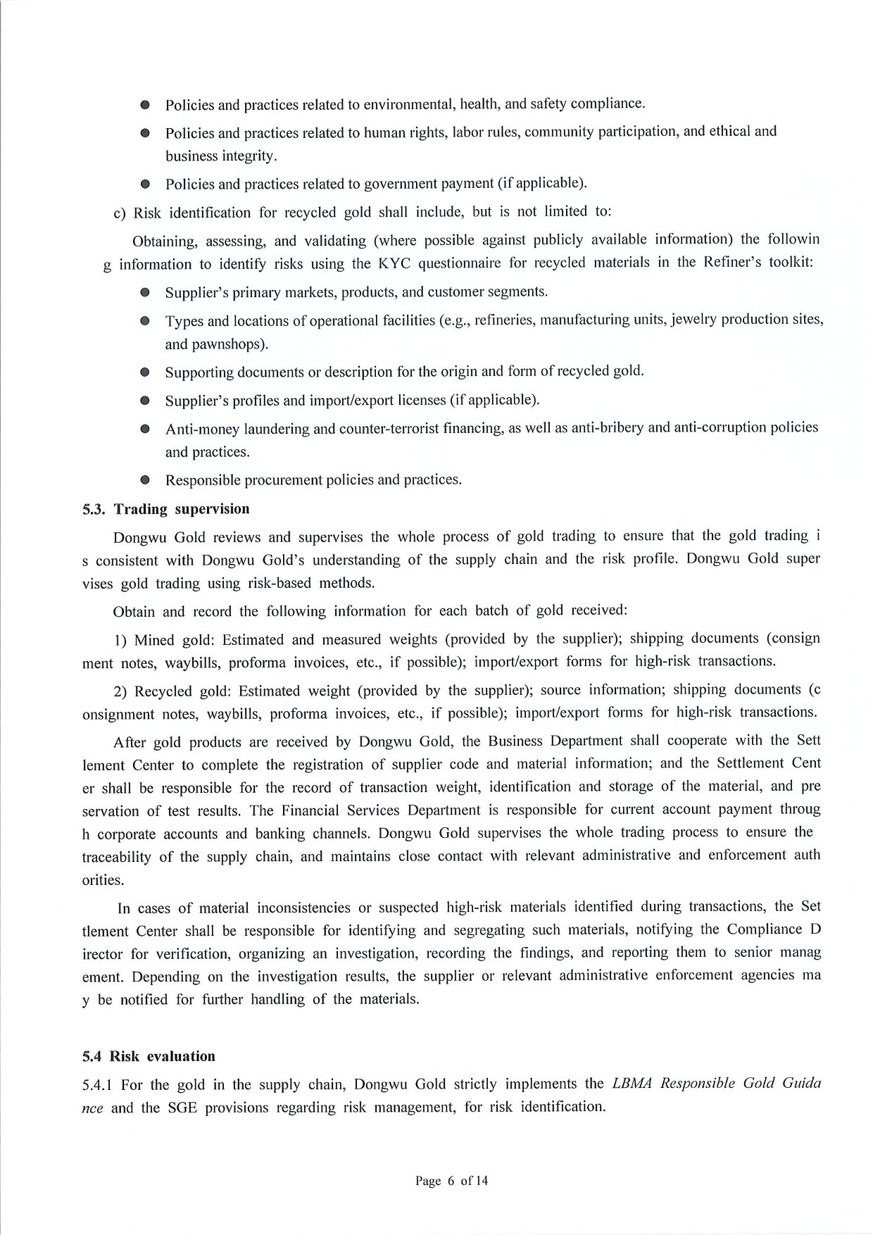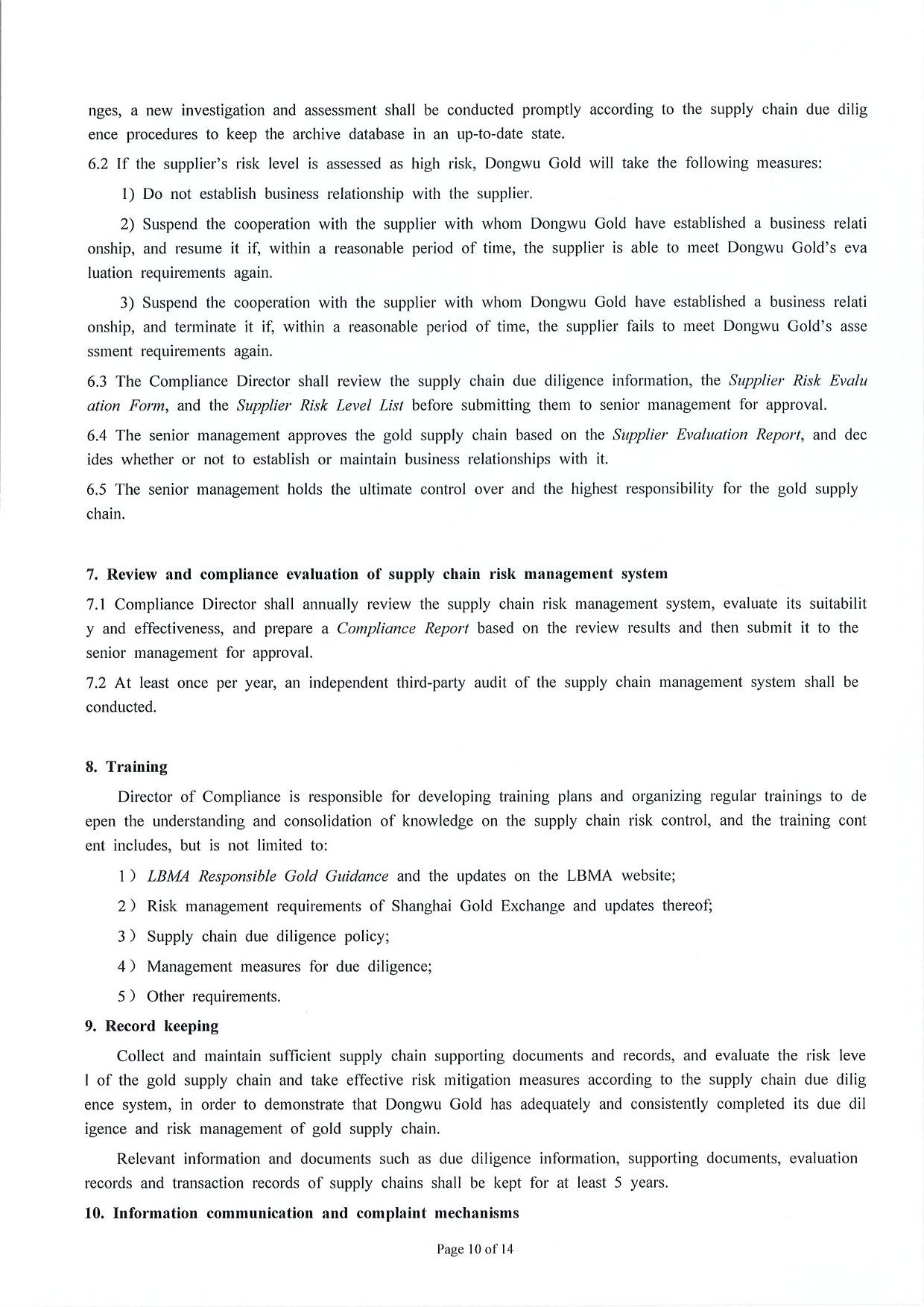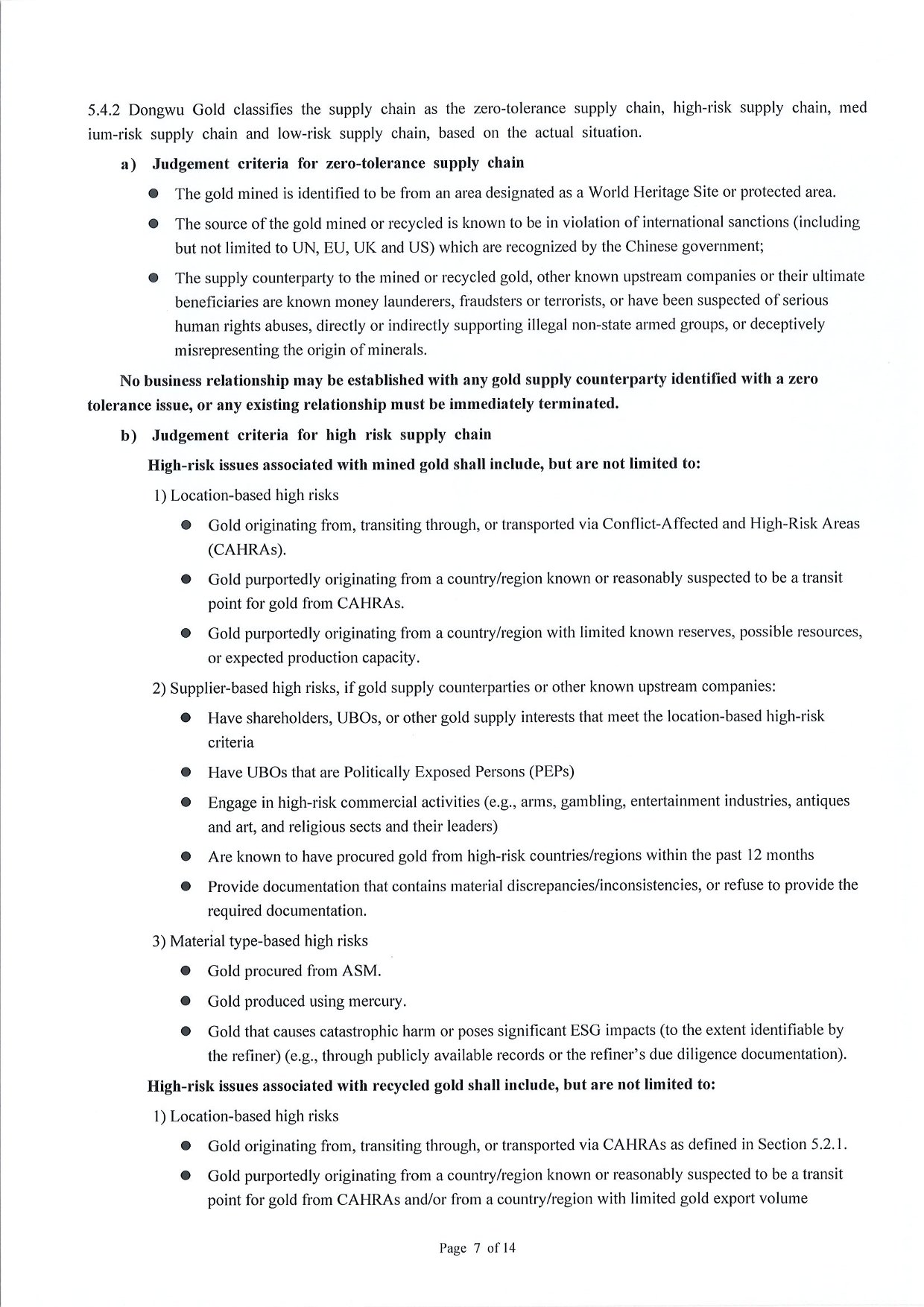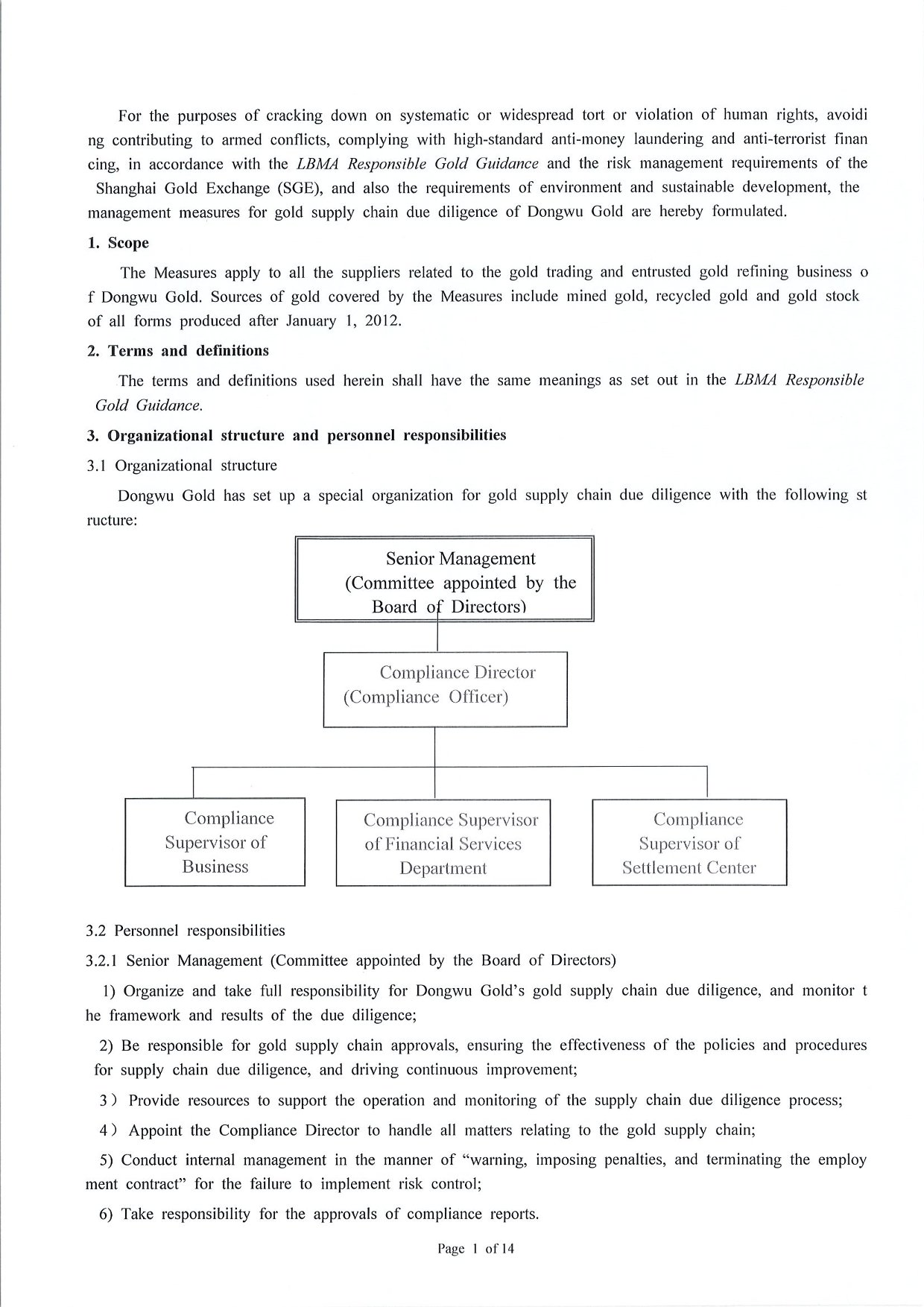 Management Measures for Supply Chain Due Diligence Dongwu Gold Group Co., Ltd(Version: G)